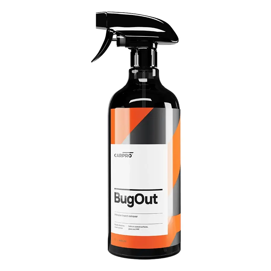 CarPro BugOut safely and easily removes smashed and baked on bugs while softening hard shelled bugs for safe removal. BugOut was developed to be safe on a wide variety of surfaces including paint, clear coat, ppf, glass, plastic, metals and more.  BugOut Quickly melts the dried remains in front of your eyes!